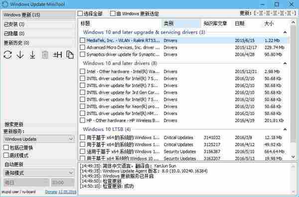 微软给Win10设定了自动下载和安装更新的机制,这让很多普通用户都不用担心更新安装问题。使用这款工具可用解决没有组策略的Windows10家庭版,控制更新下载和安装模式,比如:自动下载和安装的模式。